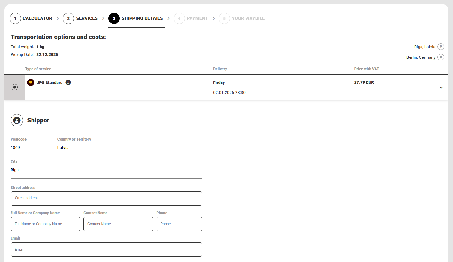 Fromme.cc offers a convenient way to calculate shipping costs for export, import, and domestic shipments, followed by online processing and payment for the service. The system takes into account base rates and individual discounts for contractual customers of authorized UPS service contractors – UPS ASC. For customers without a contract, there is the option of providing rates with a welcome discount – Welcome bonus.