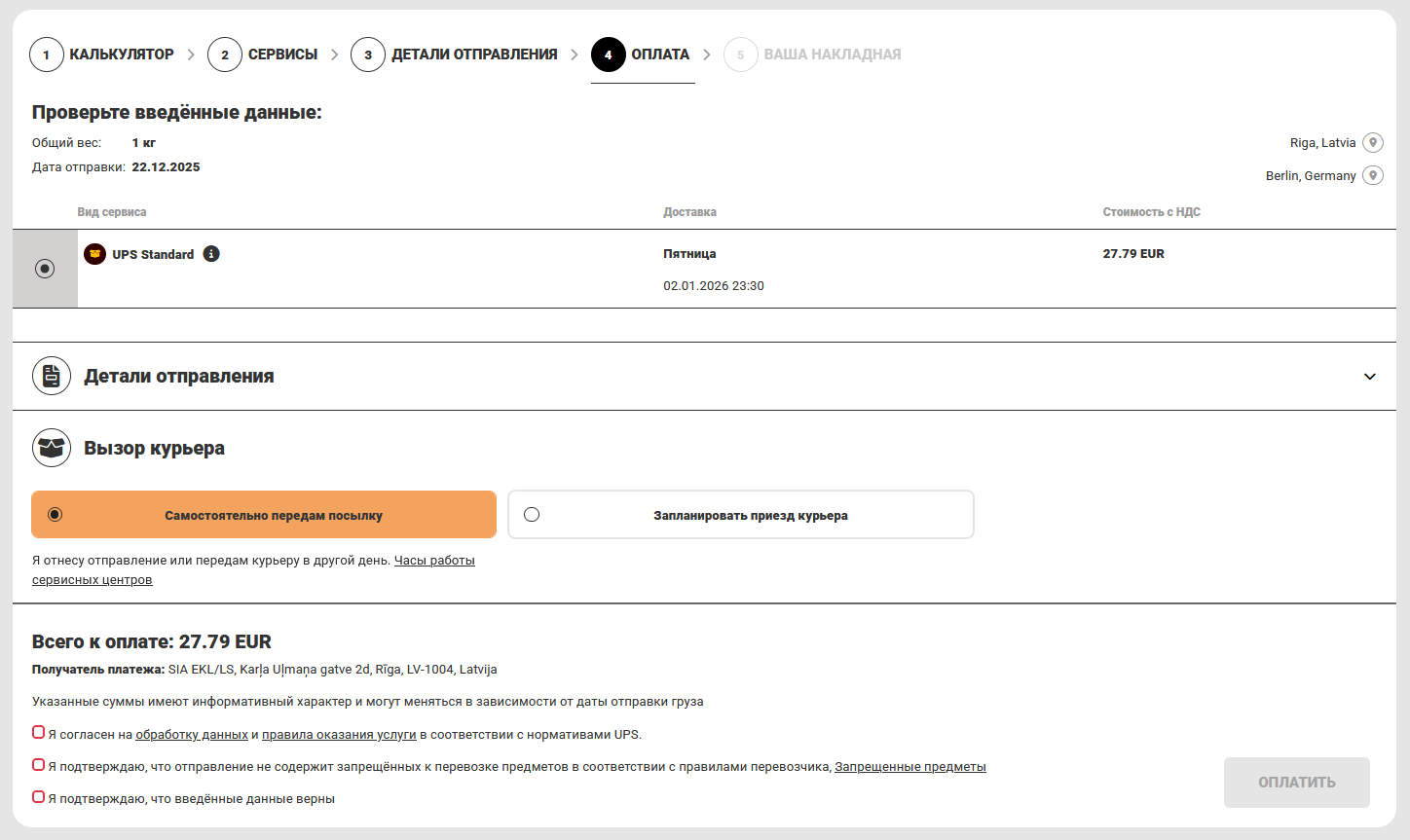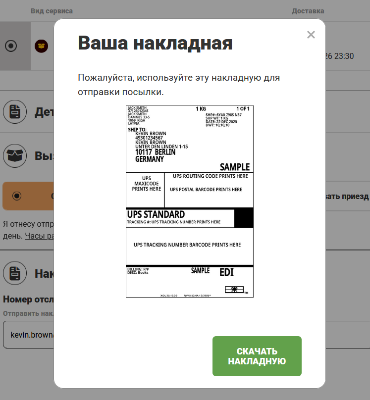 Расчёт стоимости доставки и оформление отправлений UPS ASC